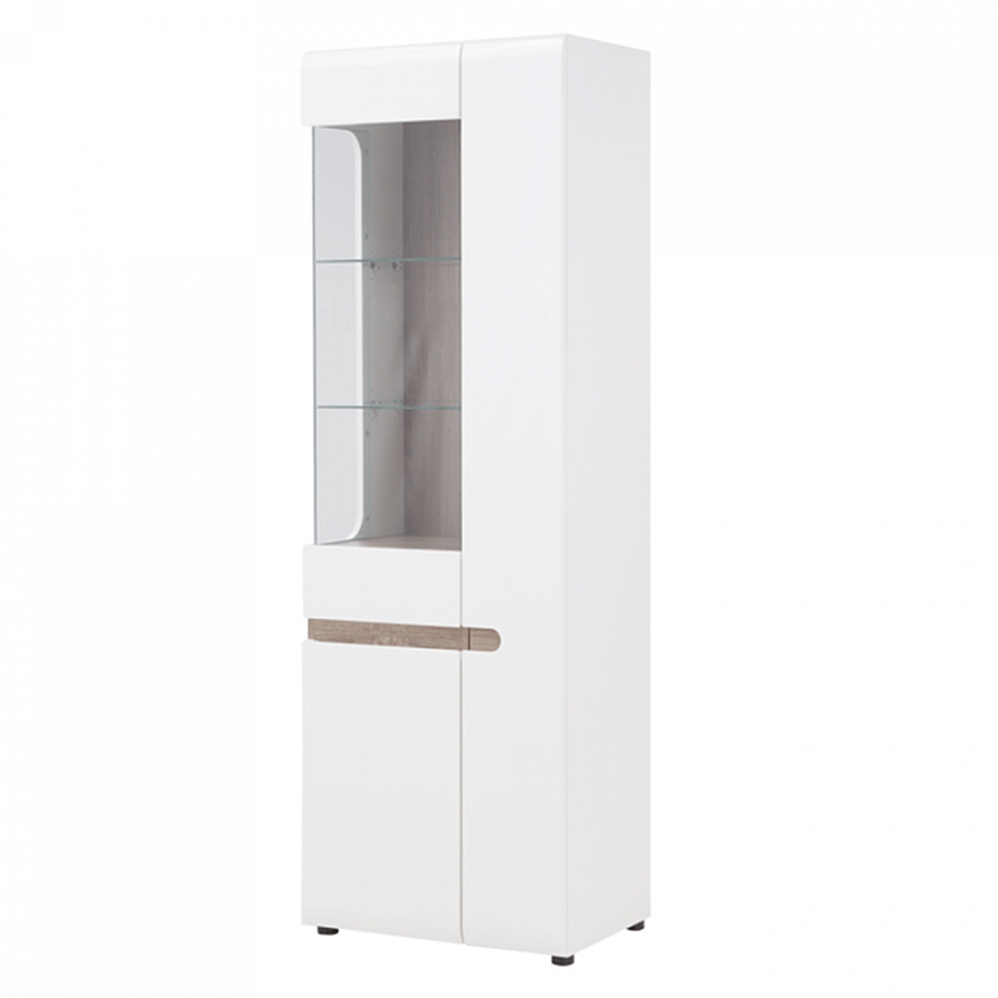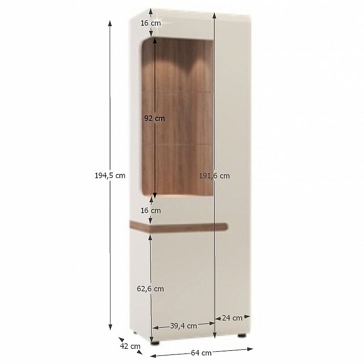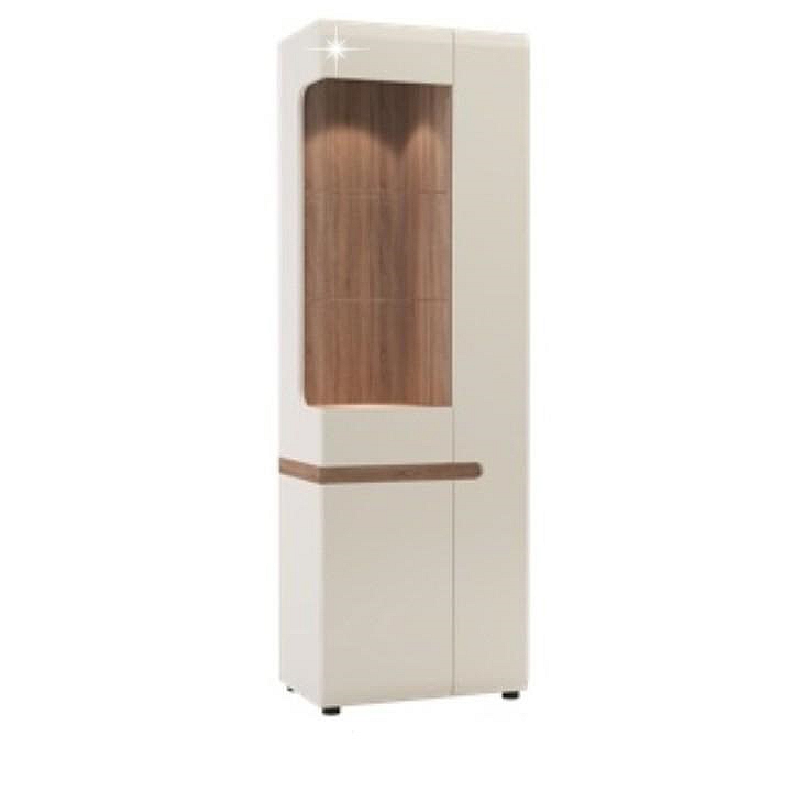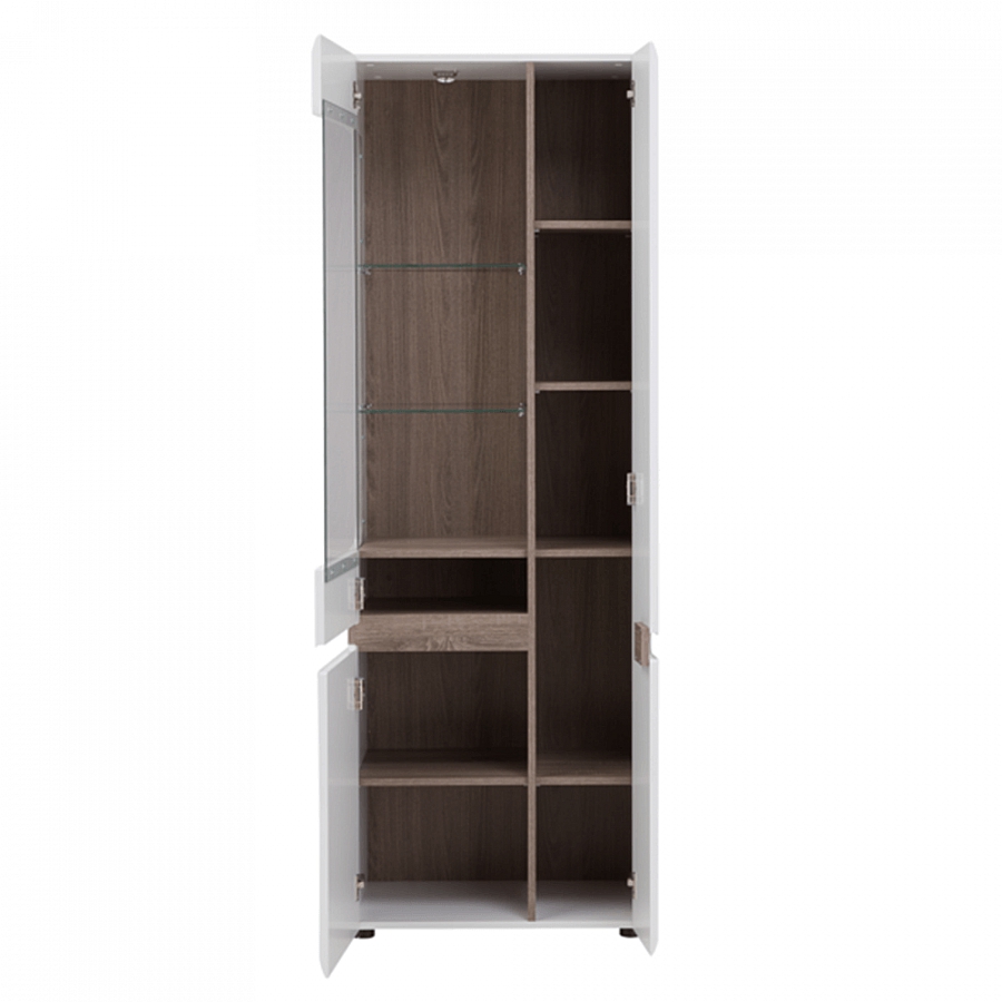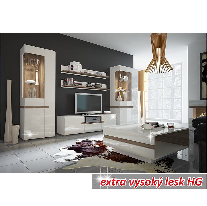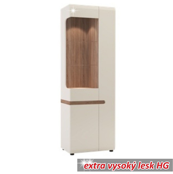 LYNATET 01 vitrína 3-dveřová z luxusní sektorové sestavy Lynatet, s německým designem s elegantními doplňky v hnědé barvě. Materiál: korpus bílé barvy MDF laminovaná, přední části jsou vyrobeny z MDF bílé barvy - extra vysoký lesk HG, DTD laminovaná odolná vůči poškrábání, vlhkosti a vysoké teplotě. Dvířka mají moderní zaoblené hrany. Rozměry (ŠxVxH): 64x194, 5x42 cm. Možnost dokoupení LED osvětlení QUADRO (bílé podbarvení) jednobodové světlo v ceně 1.070,- Kč / ks nebo dvoubodové světlo v ceně 1.500,- Kč / ks. Dodáváno v demontu.