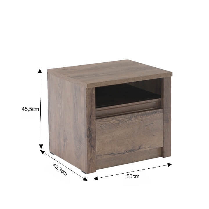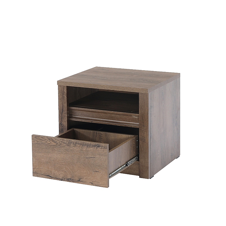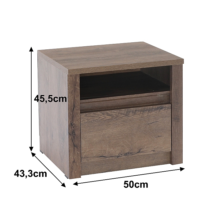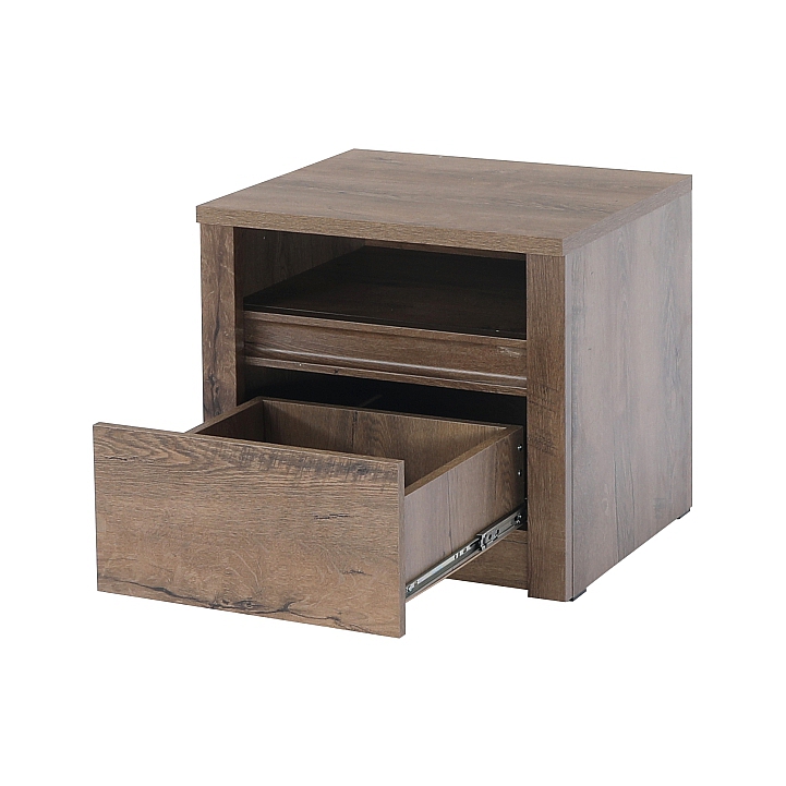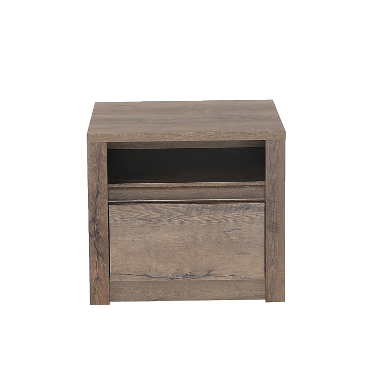 Noční stolek MONTANA SN Materiál: DTD laminovaná, ABS hrany, barevné provedení: dub lefkas tmavý. Rozměry ŠxHxV: 50x43,3x45,5 cm Dodávané v demontu
